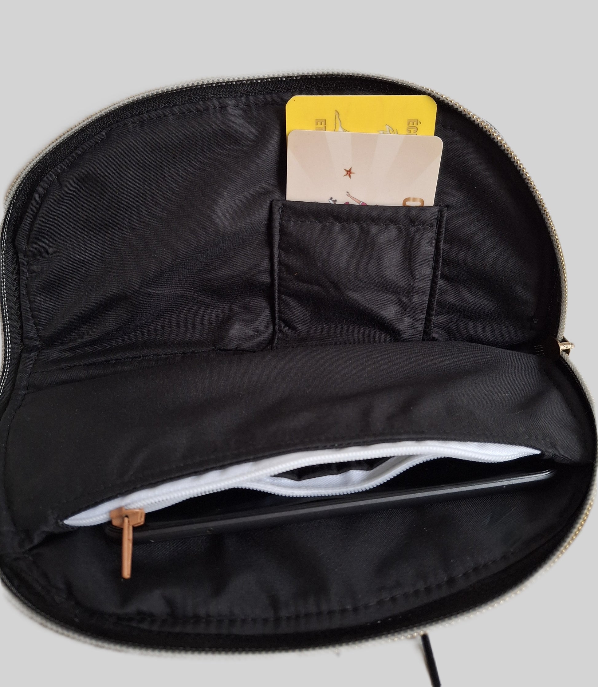 La pochette Gaby, réalisée à la main en similicuir matelassé noir (et autres modèles), incarne un raffinement intemporel. Son toucher doux et son effet capitonné lui confèrent une élégance discrète, rehaussée par une bande léopard qui apporte audace et féminité. Fermée par un zip doré, elle se révèle aussi fonctionnelle qu’esthétique, parfaite comme mini pochette de soirée ou portefeuilles. À l’intérieur, une poche zippée pour ce modèle seulement.