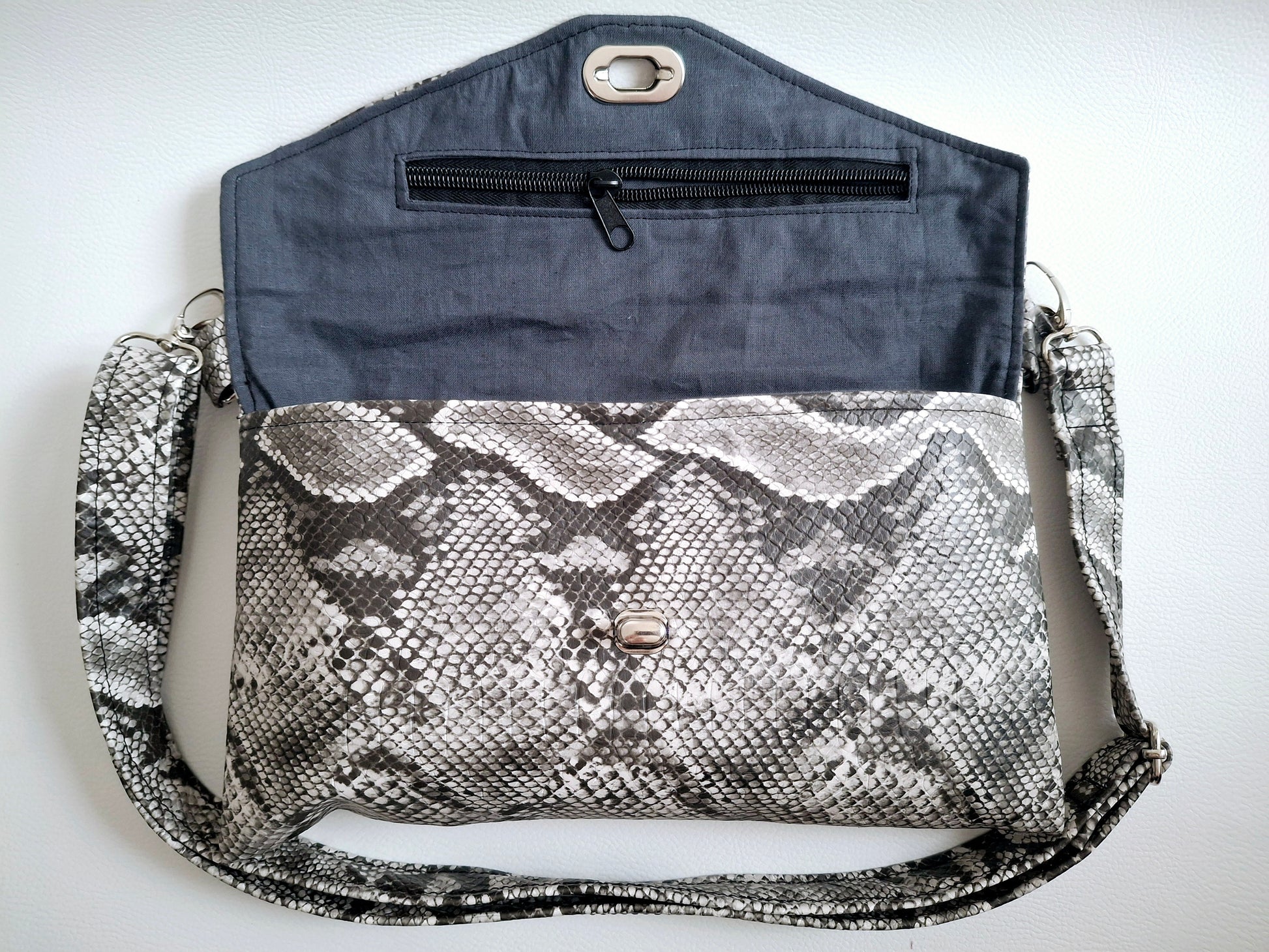 La pochette July allie élégance et praticité en suédine, simili effet serpent ou coco. Ce modèle polyvalent s'adapte facilement à tous les styles