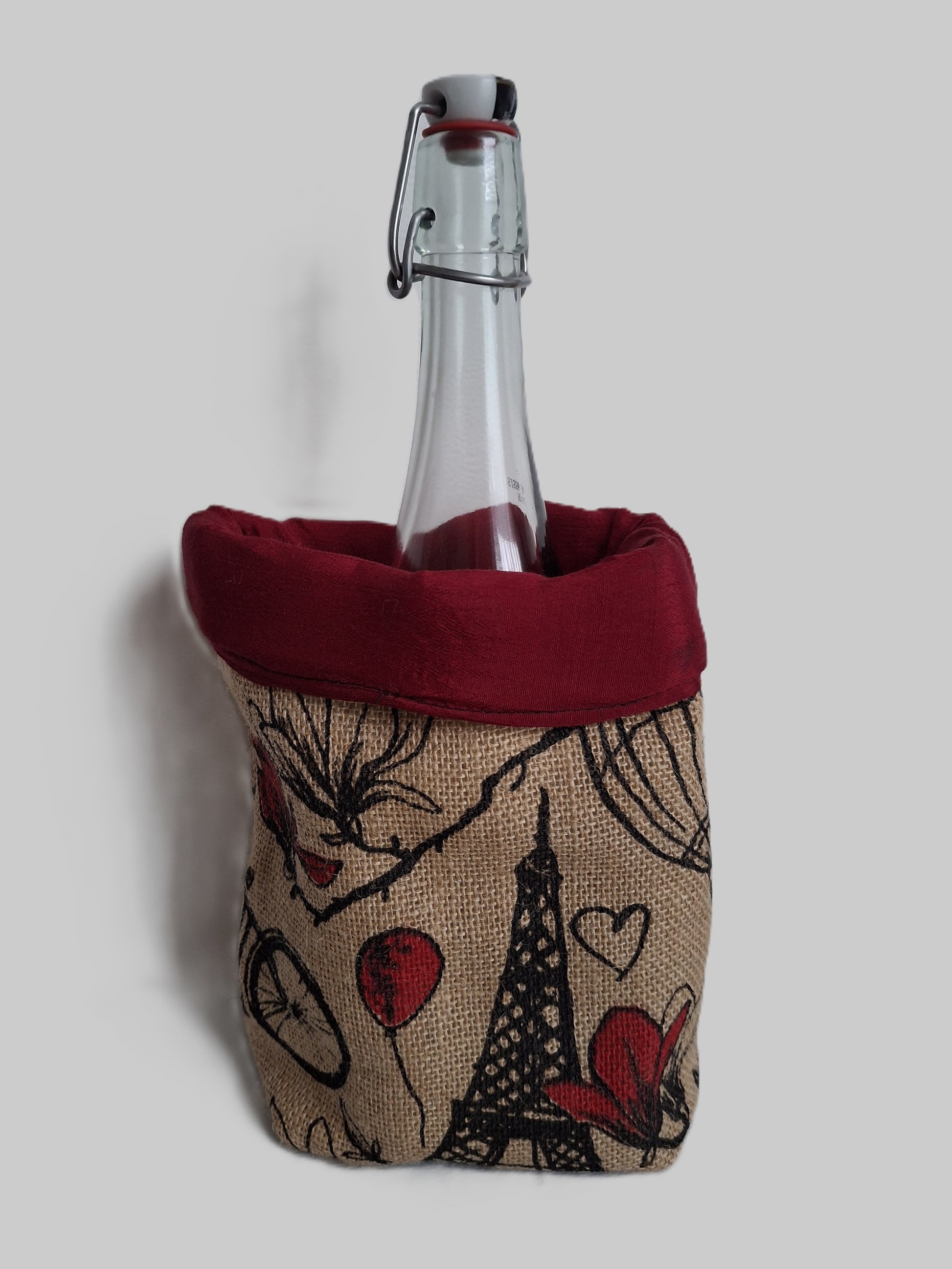 Ce porte-bouteille isotherme, accompagné de sa panière en toile de jute imprimée Paris, allie charme et praticité. Sa poignée de transport facilite vos déplacements tandis que la panière se prête à toutes vos envies : chocolat, accessoires ou surprises à glisser à l’intérieur. Offrez-le ou succombez sans hésiter, laissez libre cours à votre imagination pour réinventer chaque utilisation.