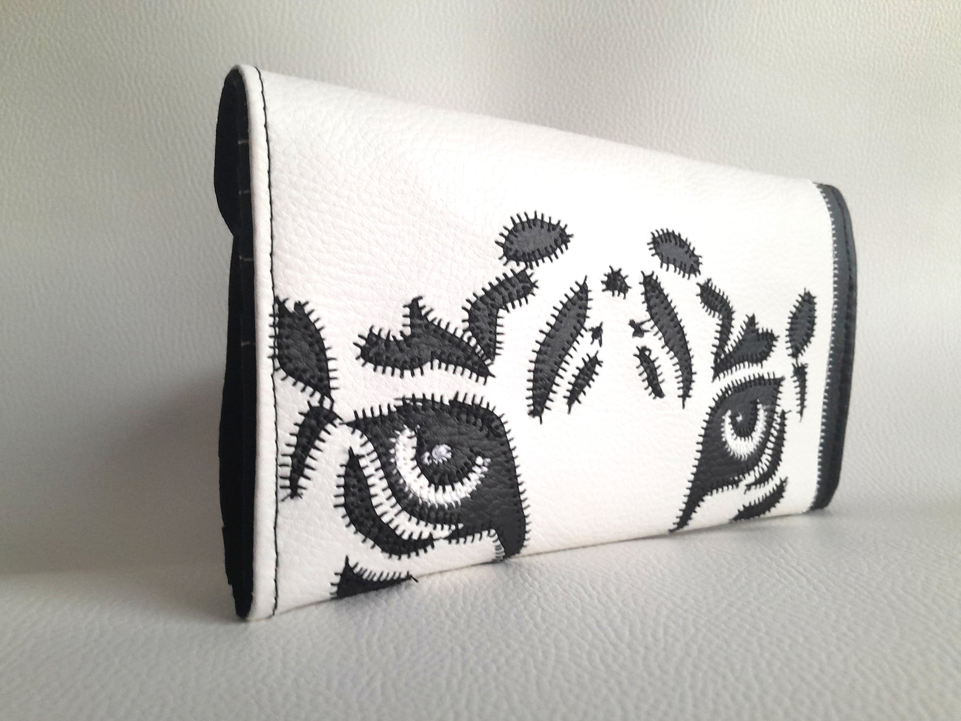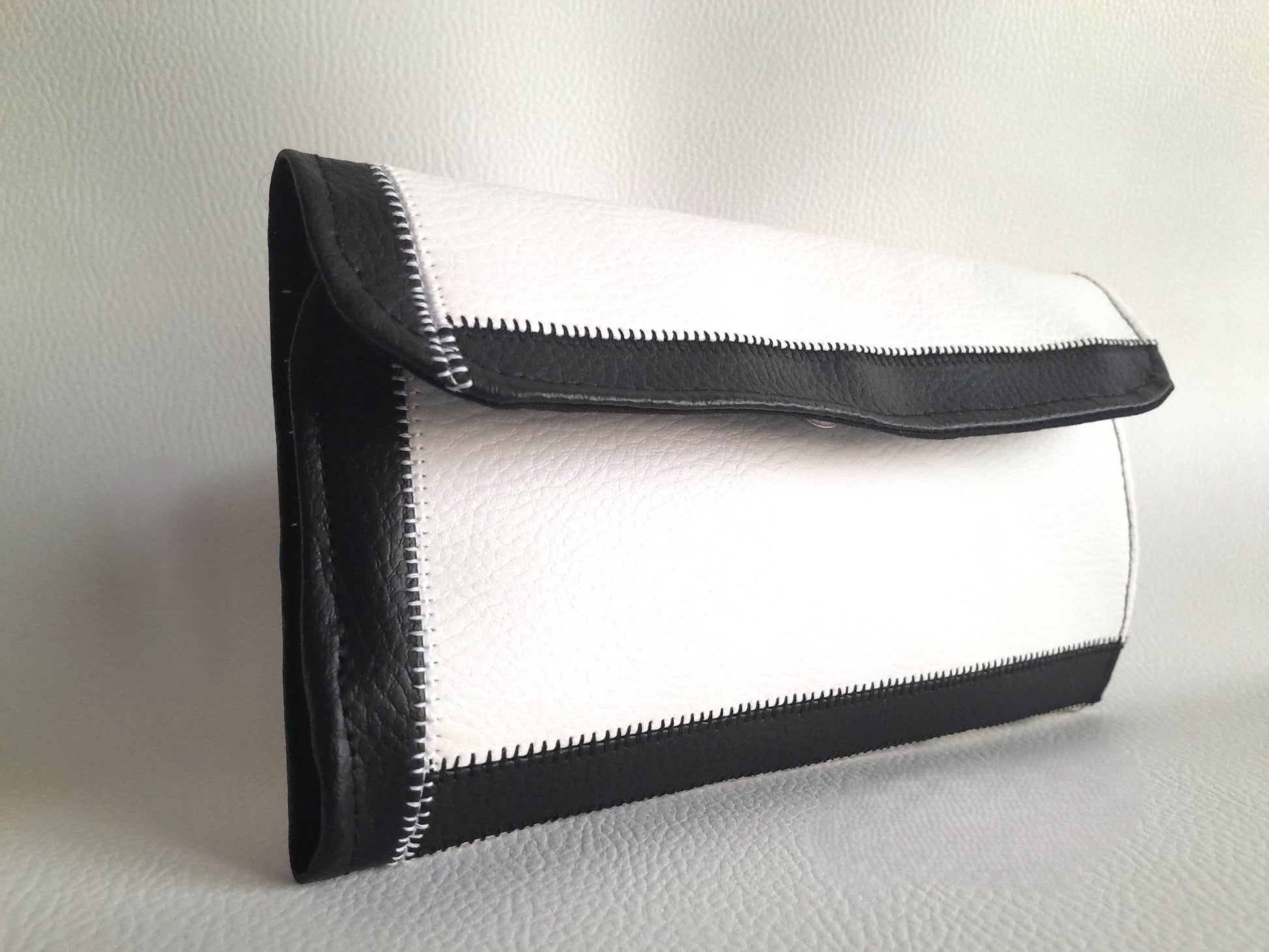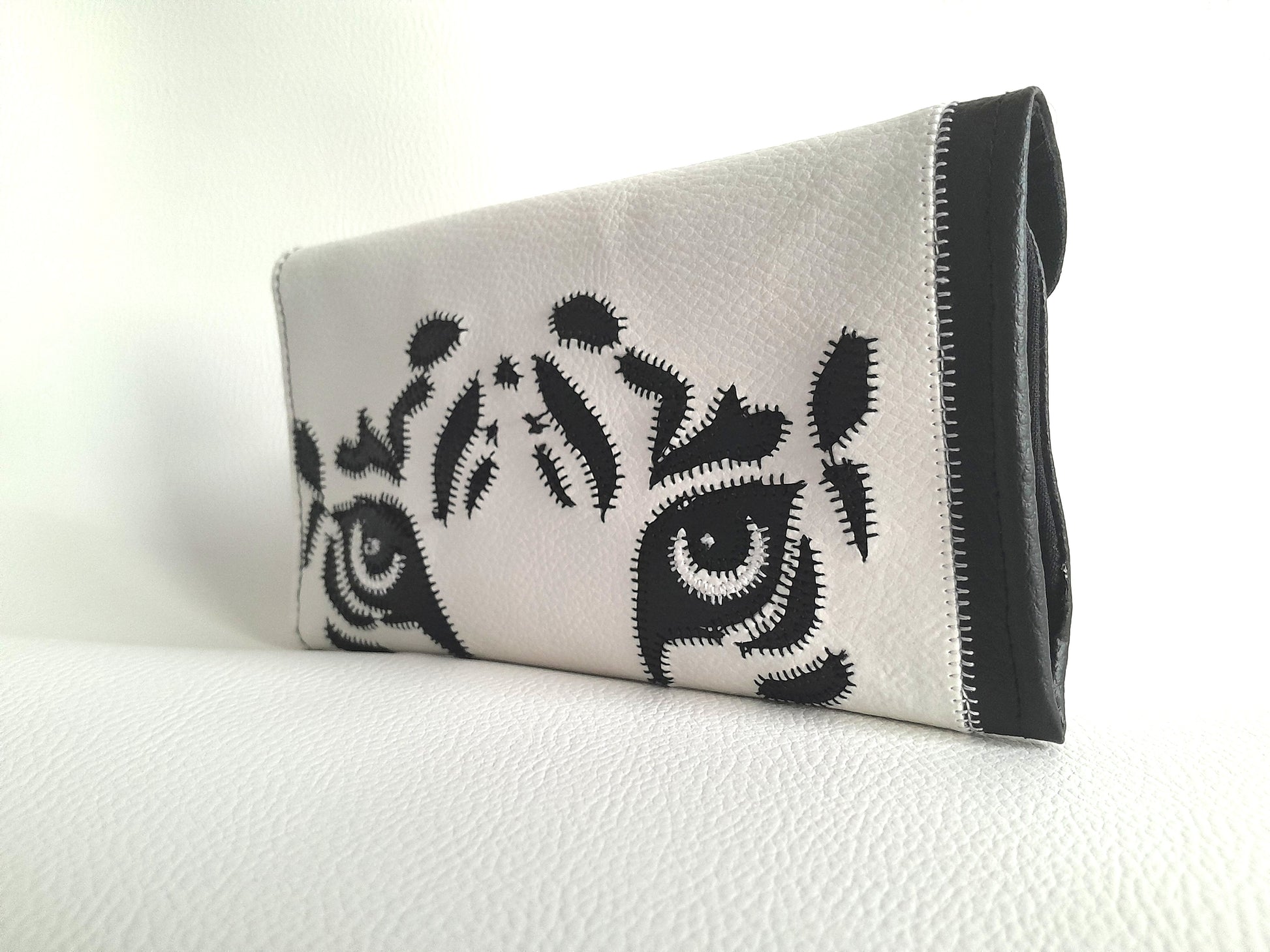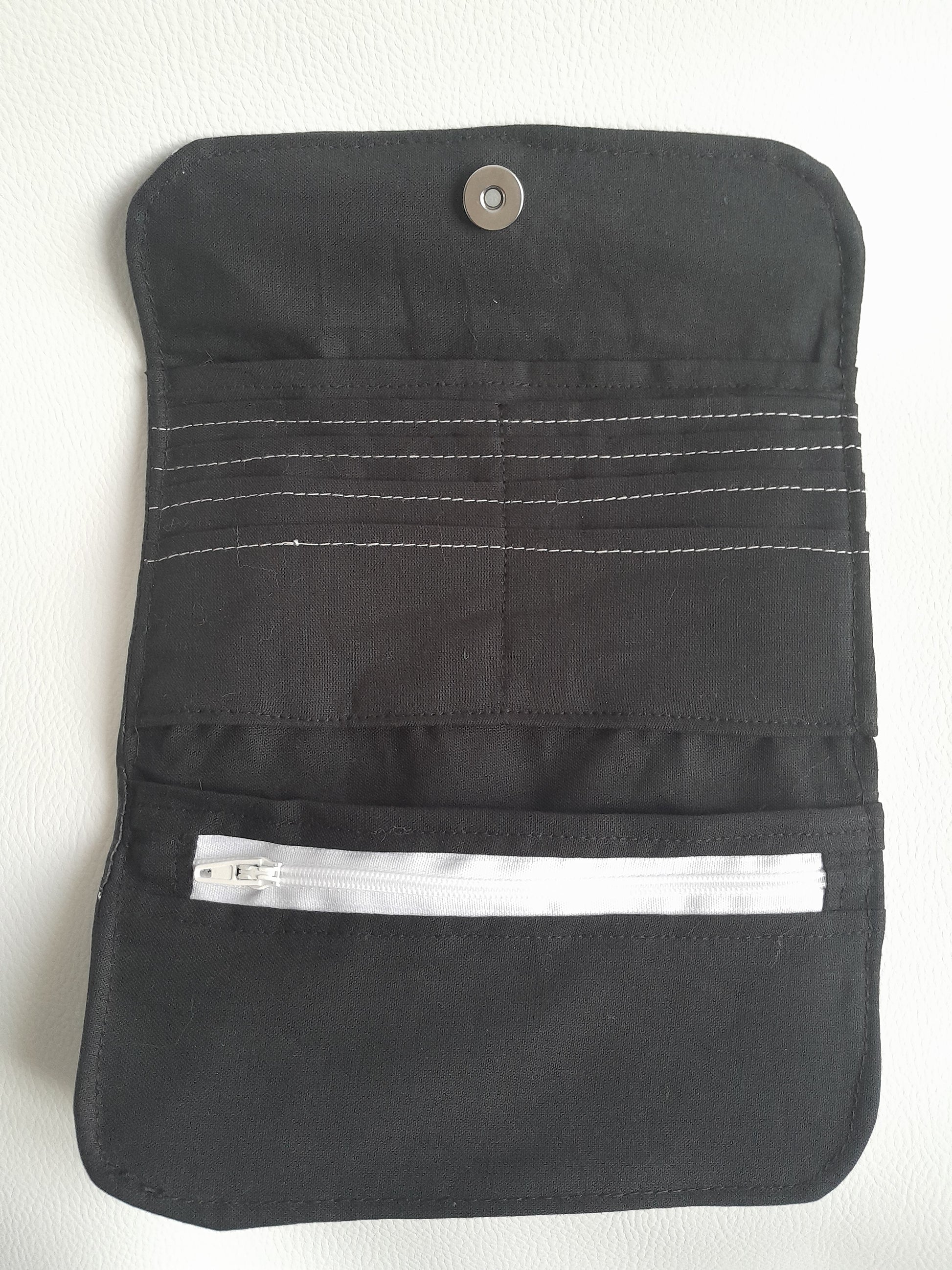 Découvrez le Portefeuille Tiger, un modèle unique confectionné à la main en simili cuir noir et blanc. Chaque pièce est découpée avec soin pour offrir un accessoire élégant et fonctionnel. Il combine un porte-cartes pratique avec un compartiment porte-monnaie et deux poches plaquées, idéal pour organiser vos essentiels au quotidien. Un choix artisanal qui allie style et utilité pour vous accompagner partout.