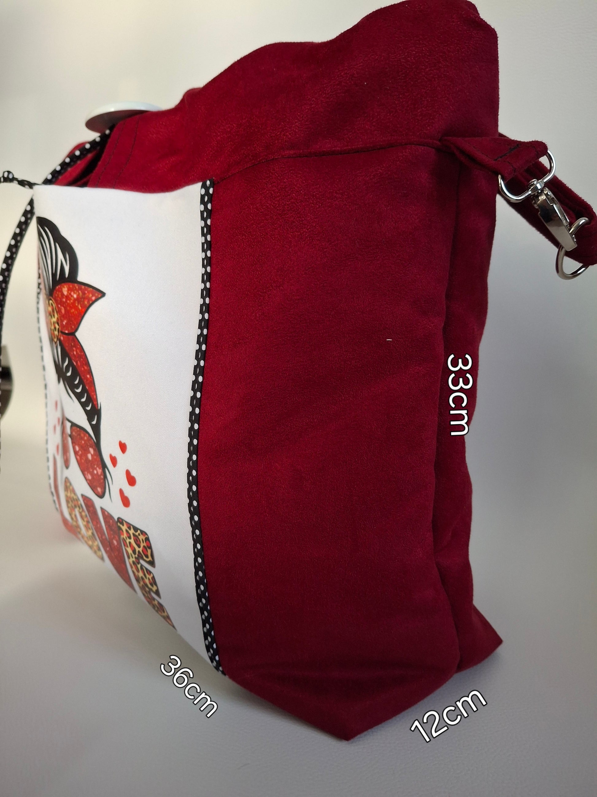 Le sac Love est un totebag au style original et rock, offrant un grand volume pour accueillir facilement toutes vos affaires. Sa fermeture avec un gros bouton-cordon assure simplicité et sécurité, tandis que sa poche zippée intérieure permet de garder vos objets essentiels à portée de main. L’anse d’épaule réglable garantit un confort personnalisé tout au long de la journée.