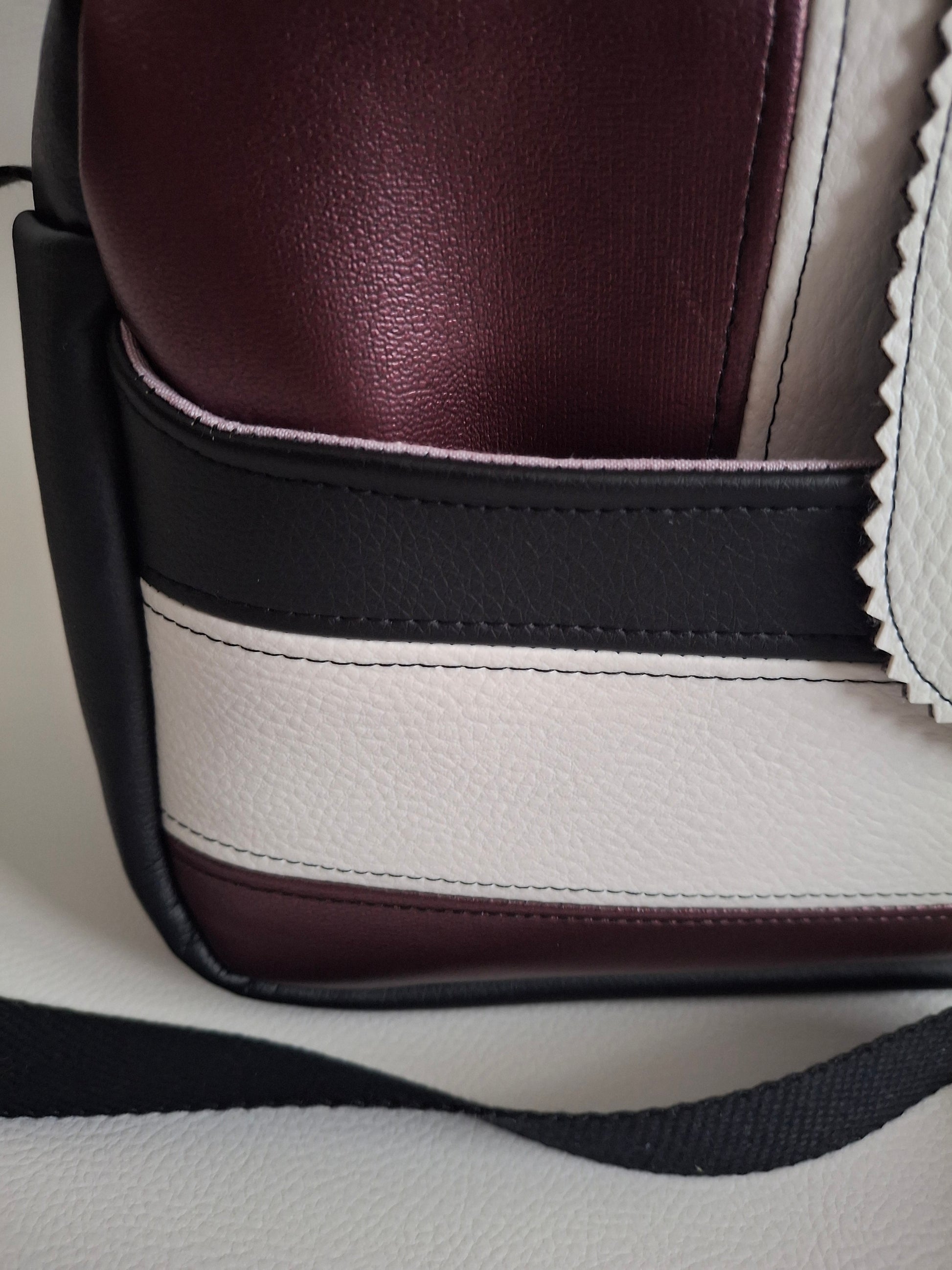 Le Sac Malaga se distingue par son design en simili cuir tricolore et sa forme originale qui apporte une touche d’élégance à votre look. Pratique et raffiné, il est orné d'un fermoir en simili blanc délicatement brodé, ajoutant un détail subtil qui fait toute la différence. Idéal pour allier style et fonctionnalité au quotidien.