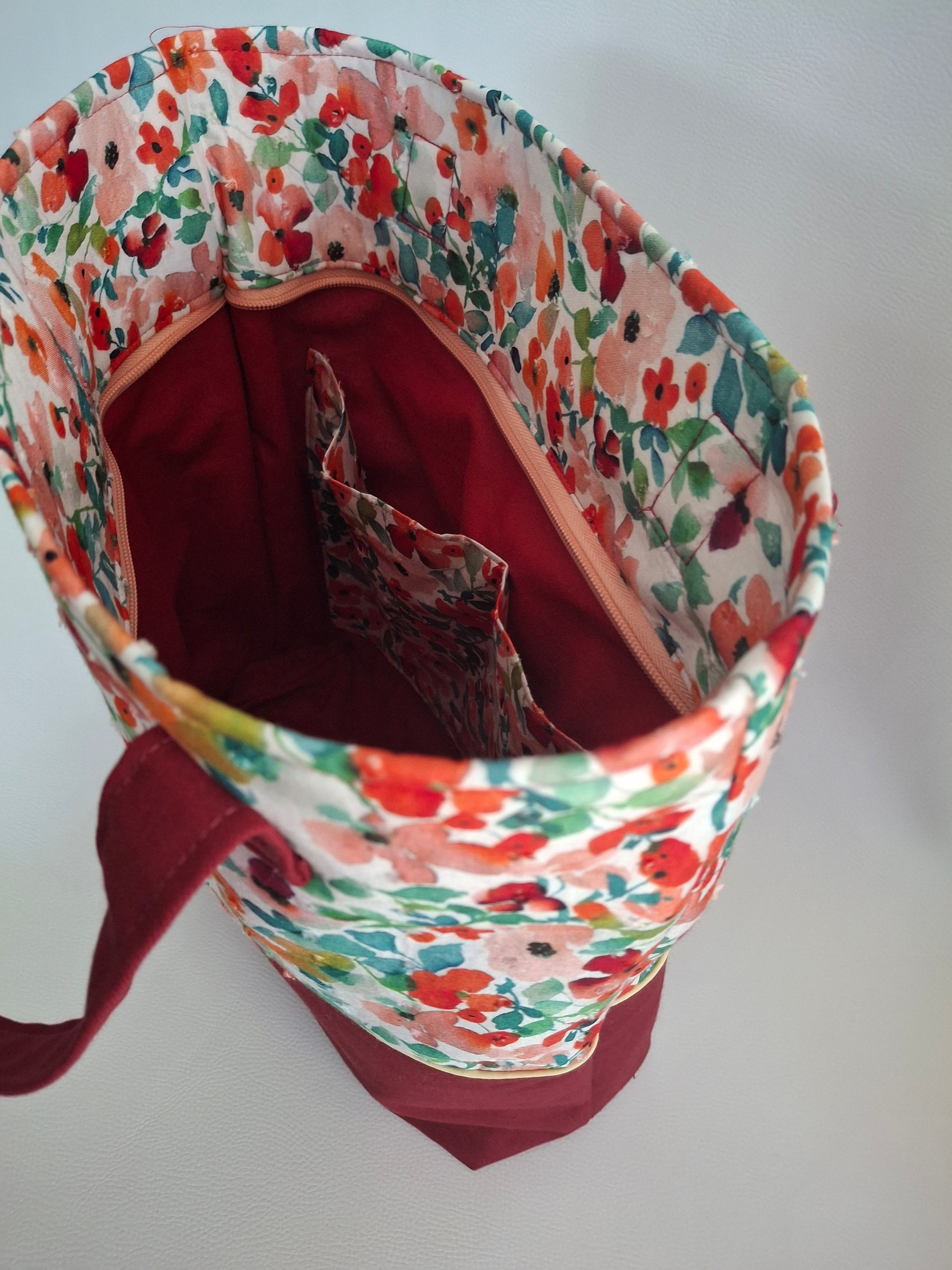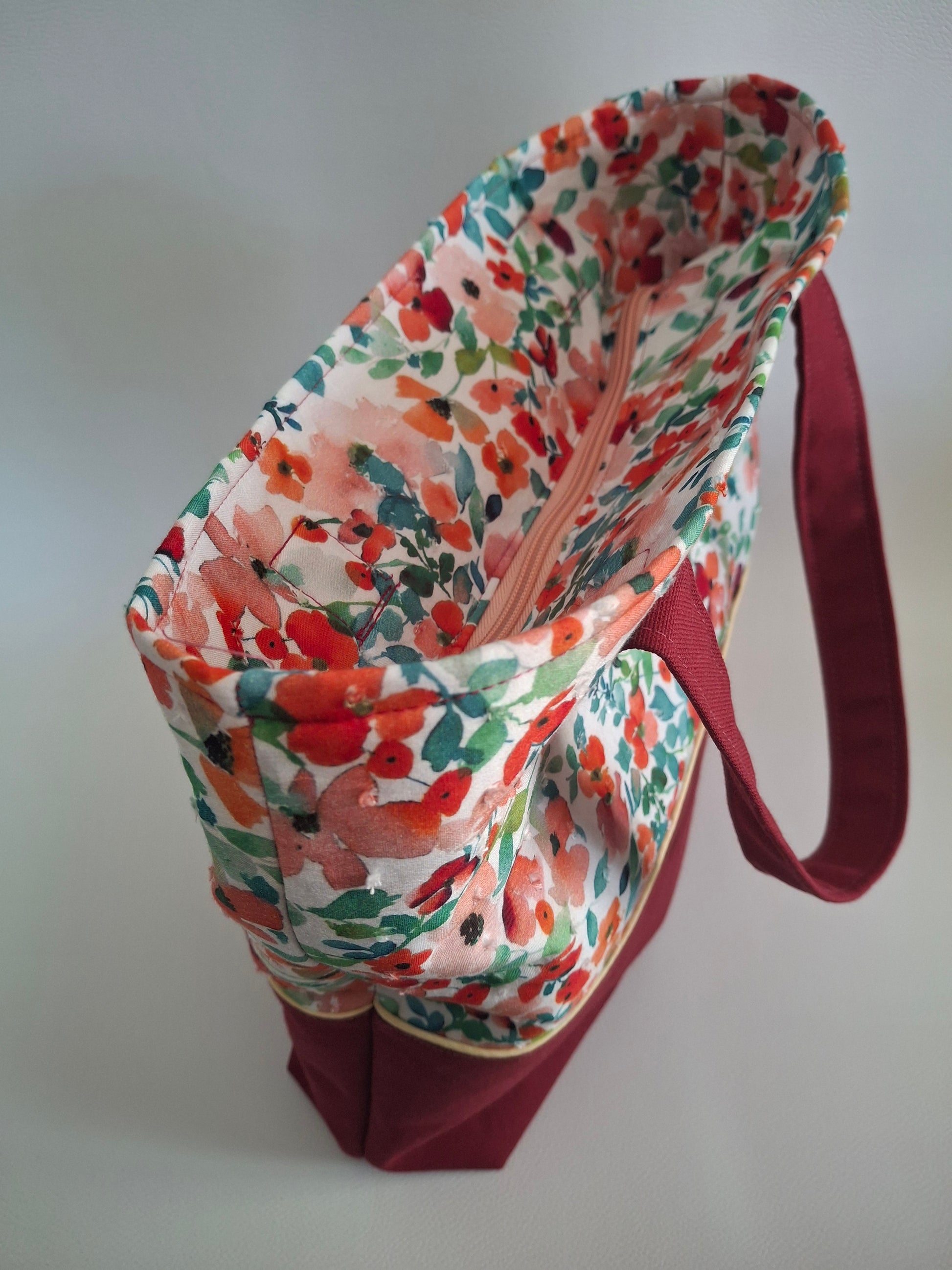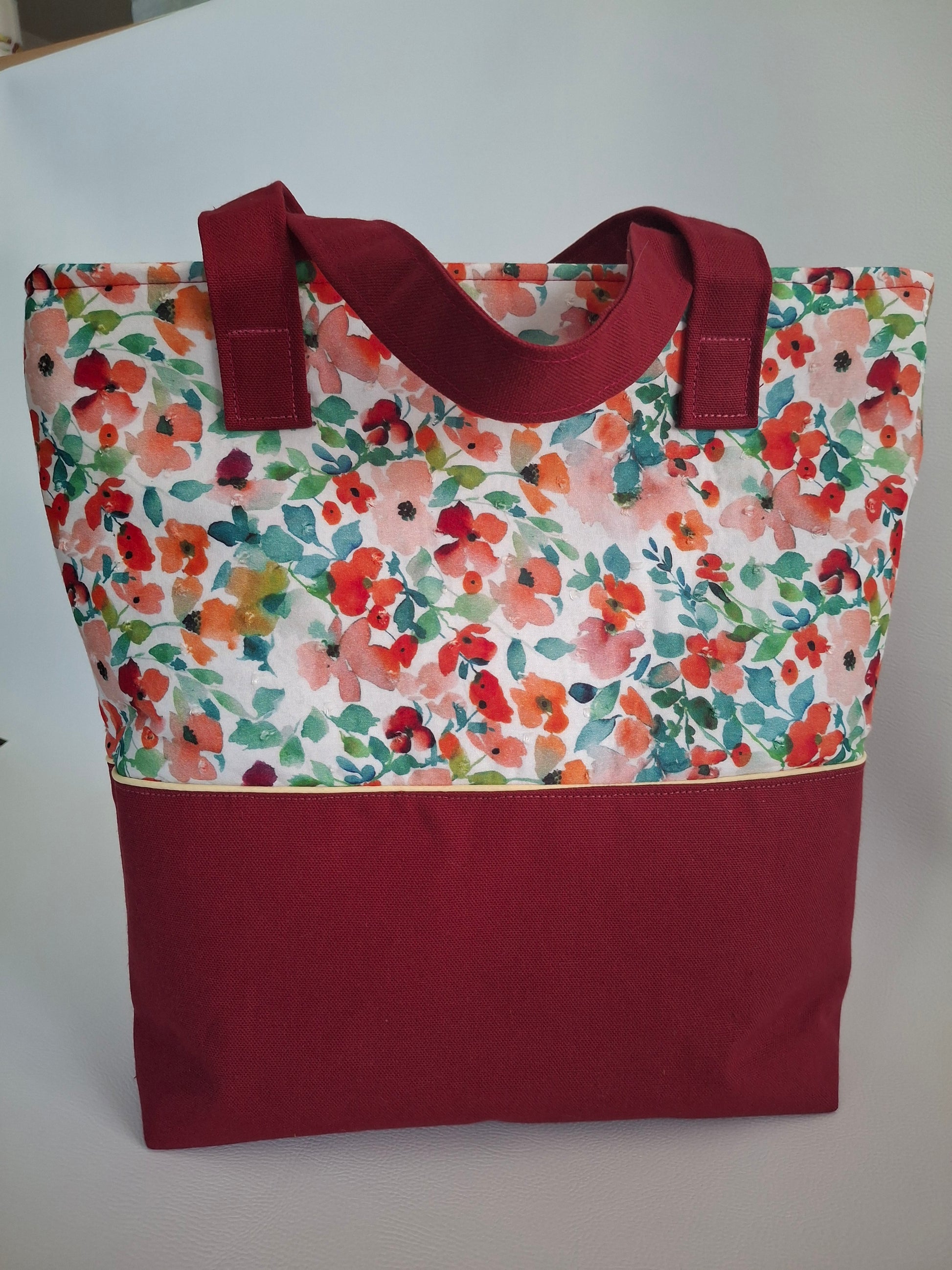 Le Sac Moa en toile de coton naté bordeaux allie élégance et praticité. Son beau volume permet de transporter facilement toutes vos affaires, tandis que l’imprimé floral apporte une touche de fraîcheur. Ce sac se porte confortablement au bras et dispose d’une double poche plaquée à l’intérieur pour organiser vos indispensables au quotidien. Un compagnon idéal pour vos sorties avec style et fonctionnalité.