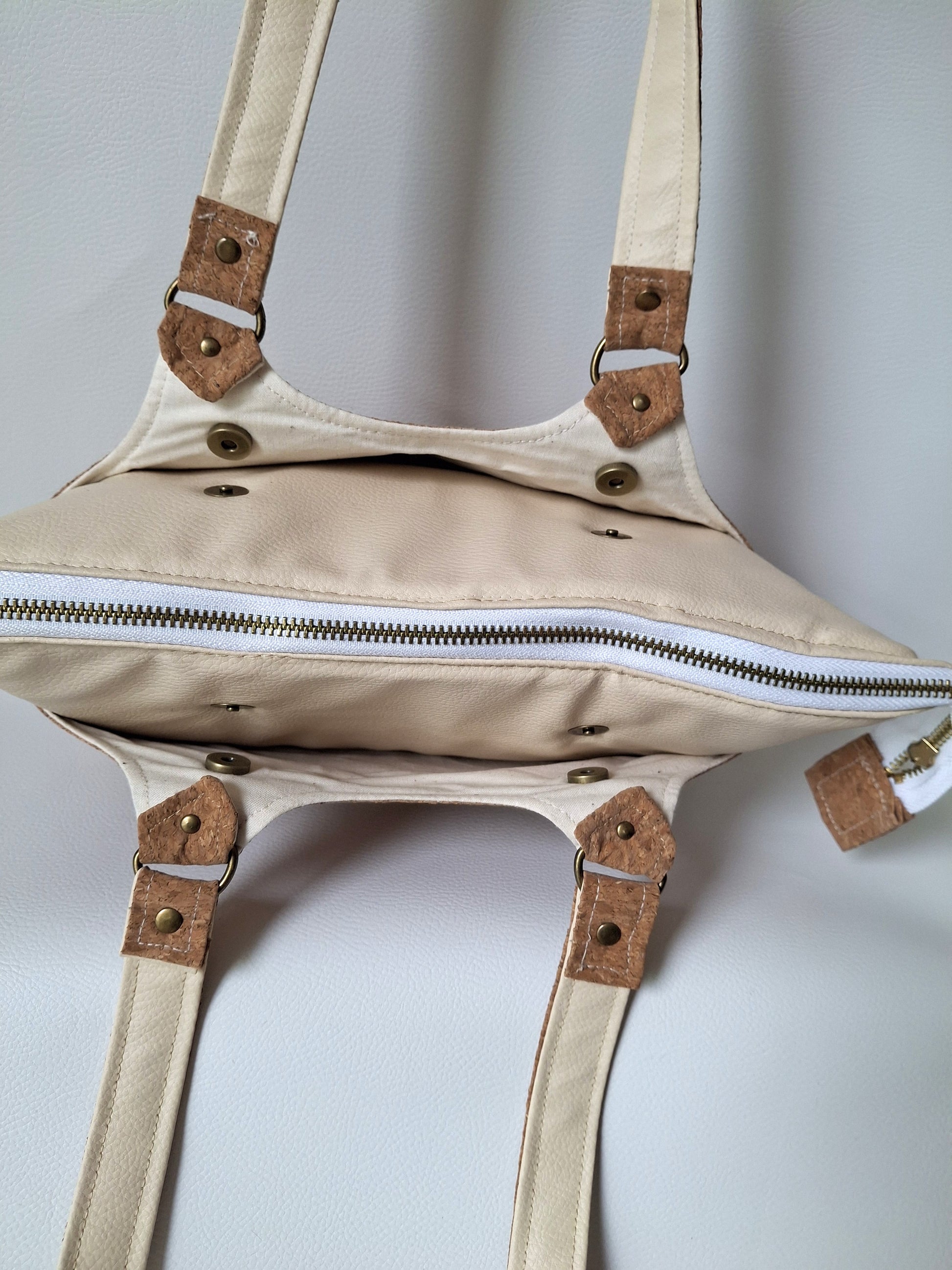 Le sac Ornithogale, confectionné en liège et simili beige, combine légèreté et raffinement. Sa fermeture zippée garantit la sécurité de vos effets personnels, tandis que deux poches aimantées discrètes sur chaque côté offrent un accès pratique. Facile à porter à l'épaule, il assure un confort durable. À l’intérieur, une double poche plaquée et une poche zippée facilitent l’organisation. Son coloris doux correspond parfaitement à la transition entre fin d’été et début d’automne, pour accompagner vos looks en toute saison.