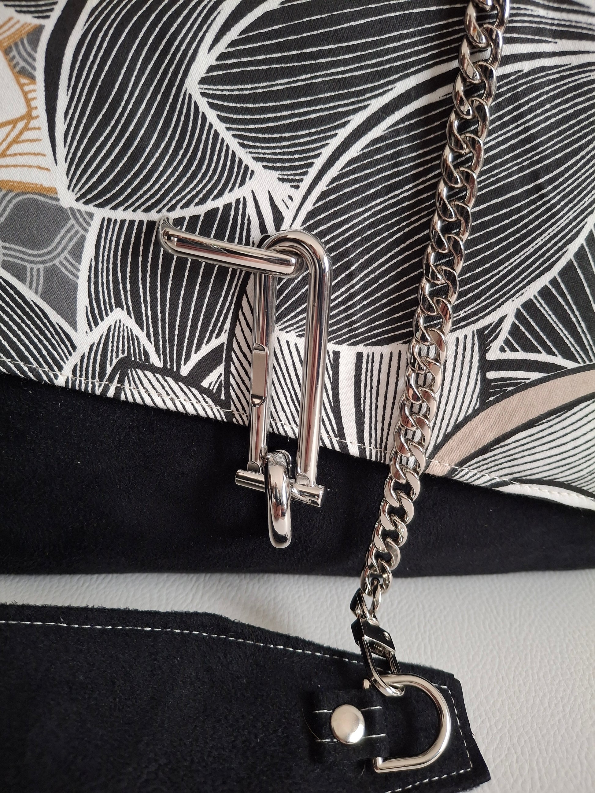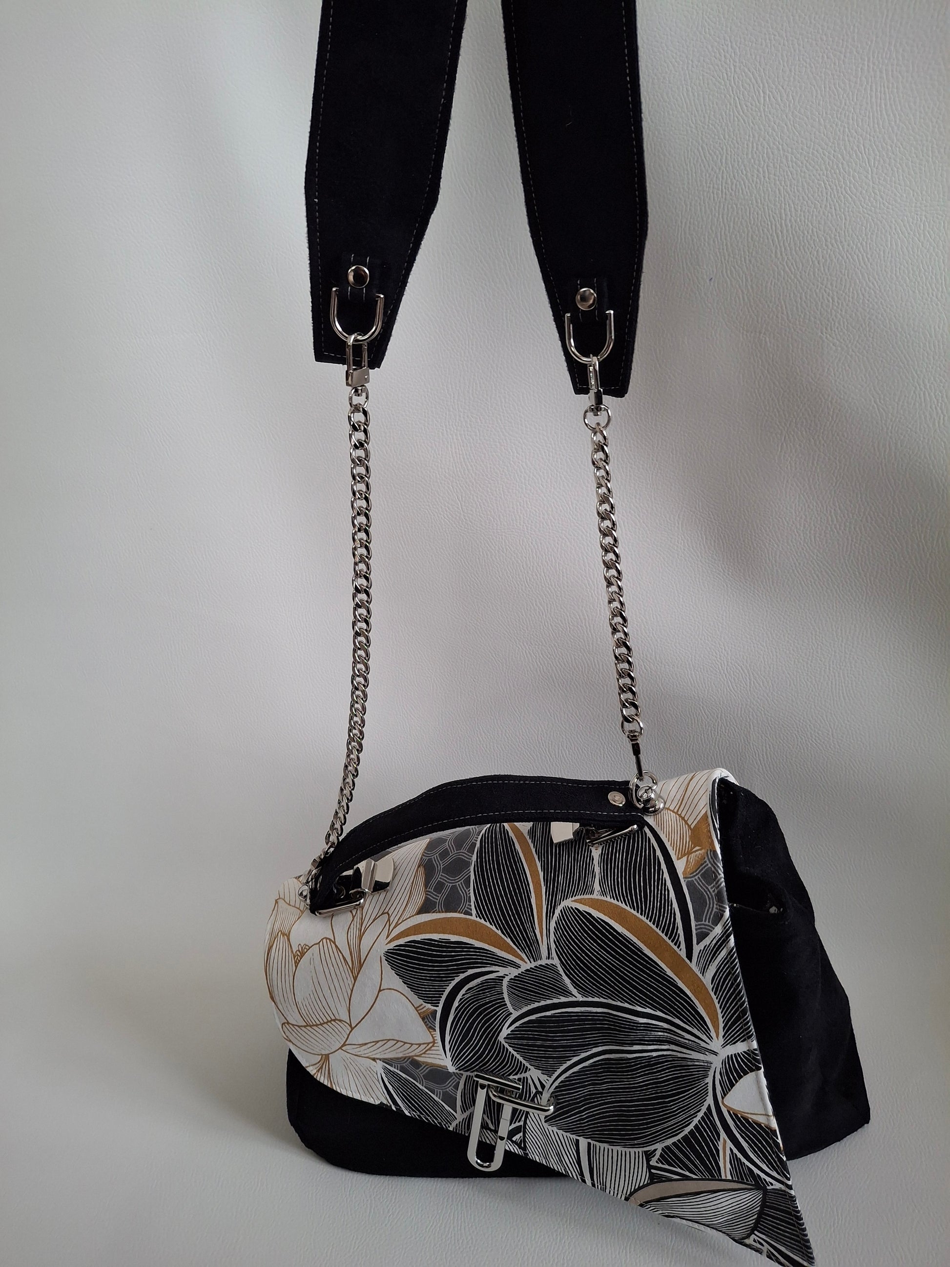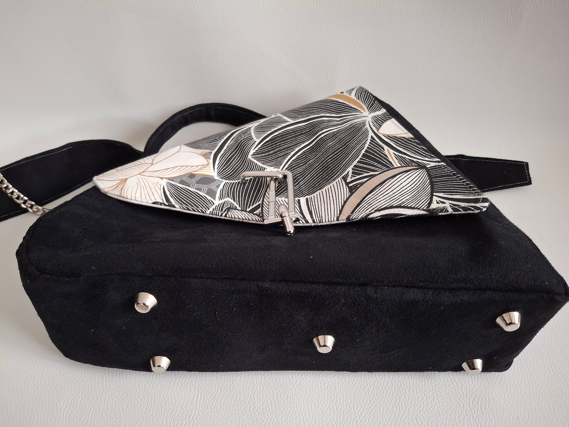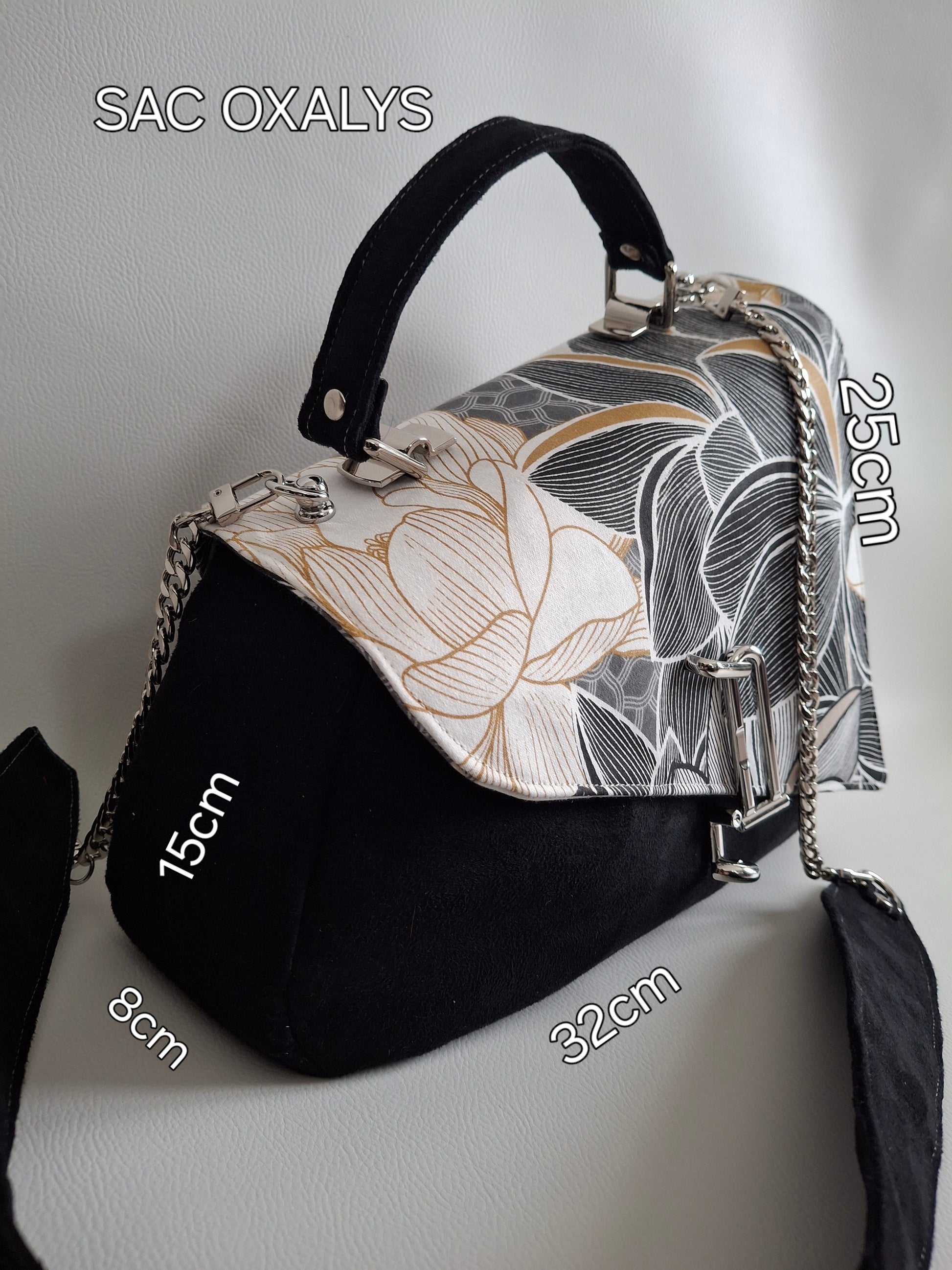 Le Sac Oxalys allie élégance et robustesse grâce à sa suédine noire raffinée et son coton des Vosges de qualité supérieure. Chaque détail, de la bouclerie sélectionnée avec soin, garantit une finition durable et unique, faisant de ce sac un accessoire à la fois pratique et distingué. Conçu pour durer, il reflète un savoir-faire expert et une attention méticuleuse aux matériaux.