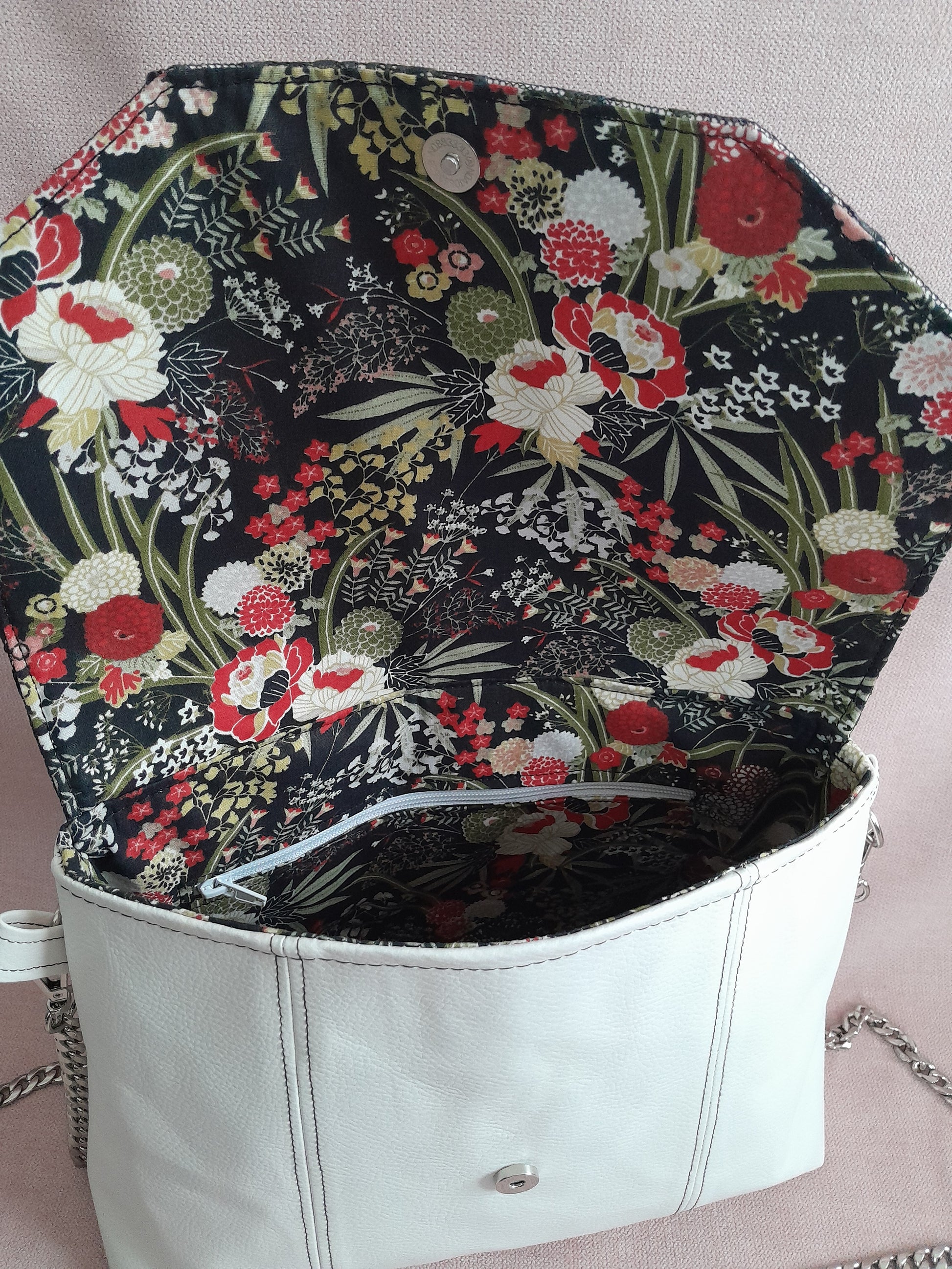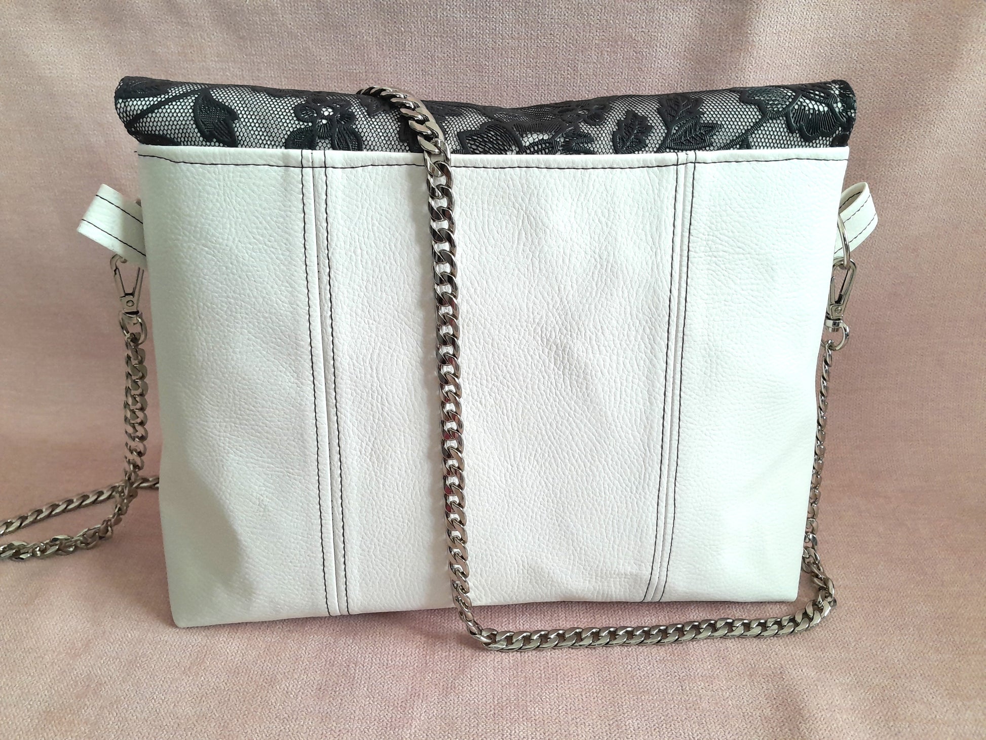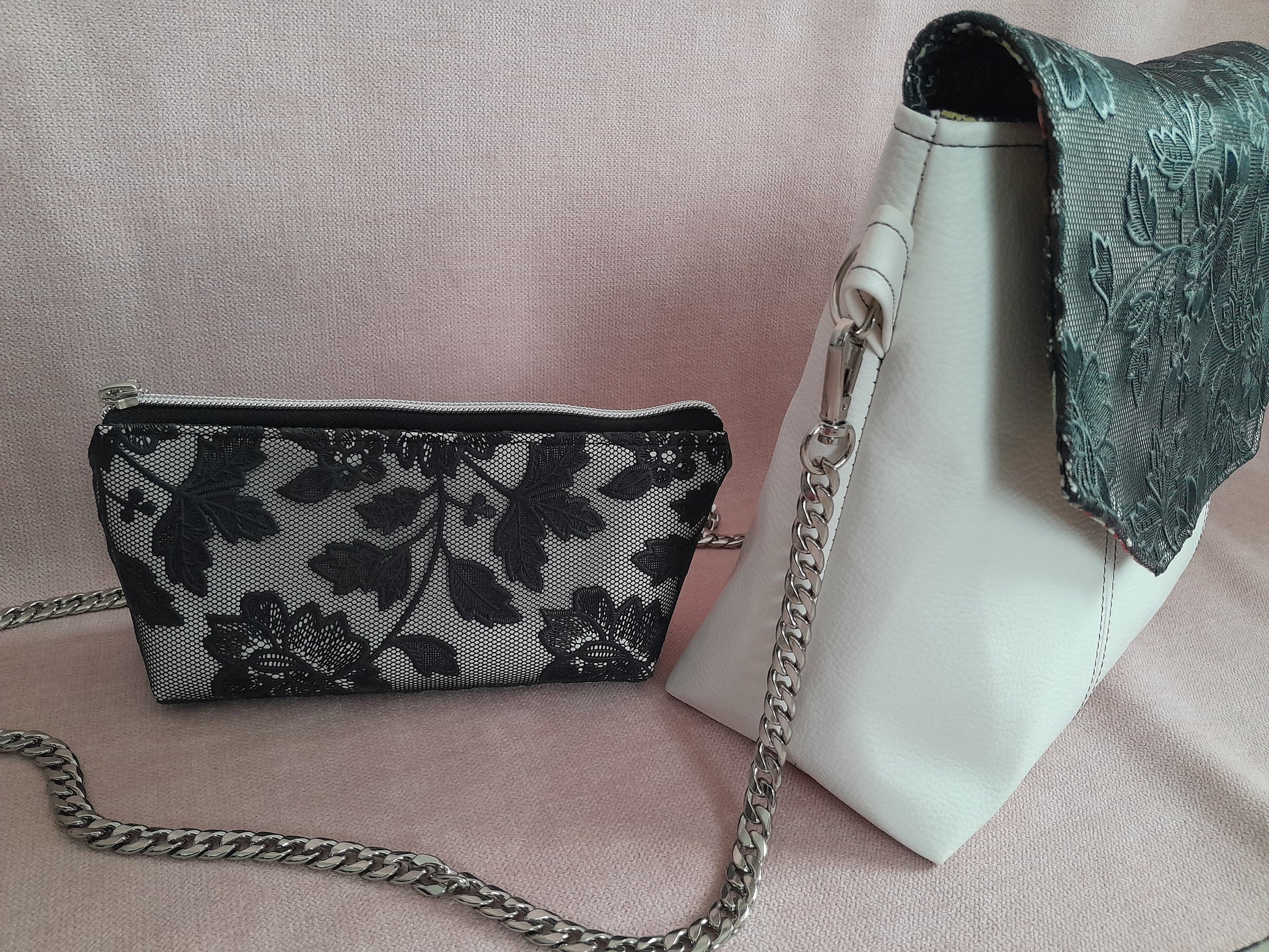 Le sac Percy, accompagné de son portemonnaie en dentelle de simili noir et blanc, offre un style très chic et raffiné. Sa chaîne en acier inoxydable assure une solidité durable tout en apportant une touche moderne. Les surpiqûres délicates affinent la silhouette de l’ensemble, tandis que la doublure fleurie apporte une note élégante et féminine. Un choix parfait pour un look à la fois sophistiqué et pratique.