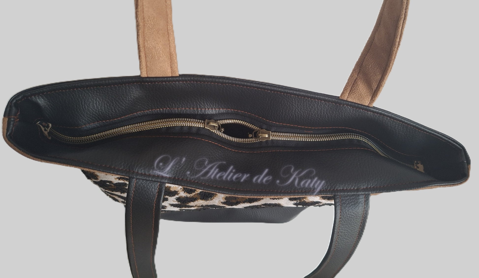 Le Sac Trilogie Sauvage ose le mélange audacieux de trois matières : simili noir, imprimé léopard français et alcantara camel. Ce petit totebag, parfaitement fermé par un zip double curseur, allie praticité et style sauvage. Ses sangles d’épaules aux couleurs contrastées renforcent son côté unique. À l’intérieur, double poche zippée et mousqueton garantissent une organisation sécurisée, idéal pour affirmer votre personnalité chaque jour.