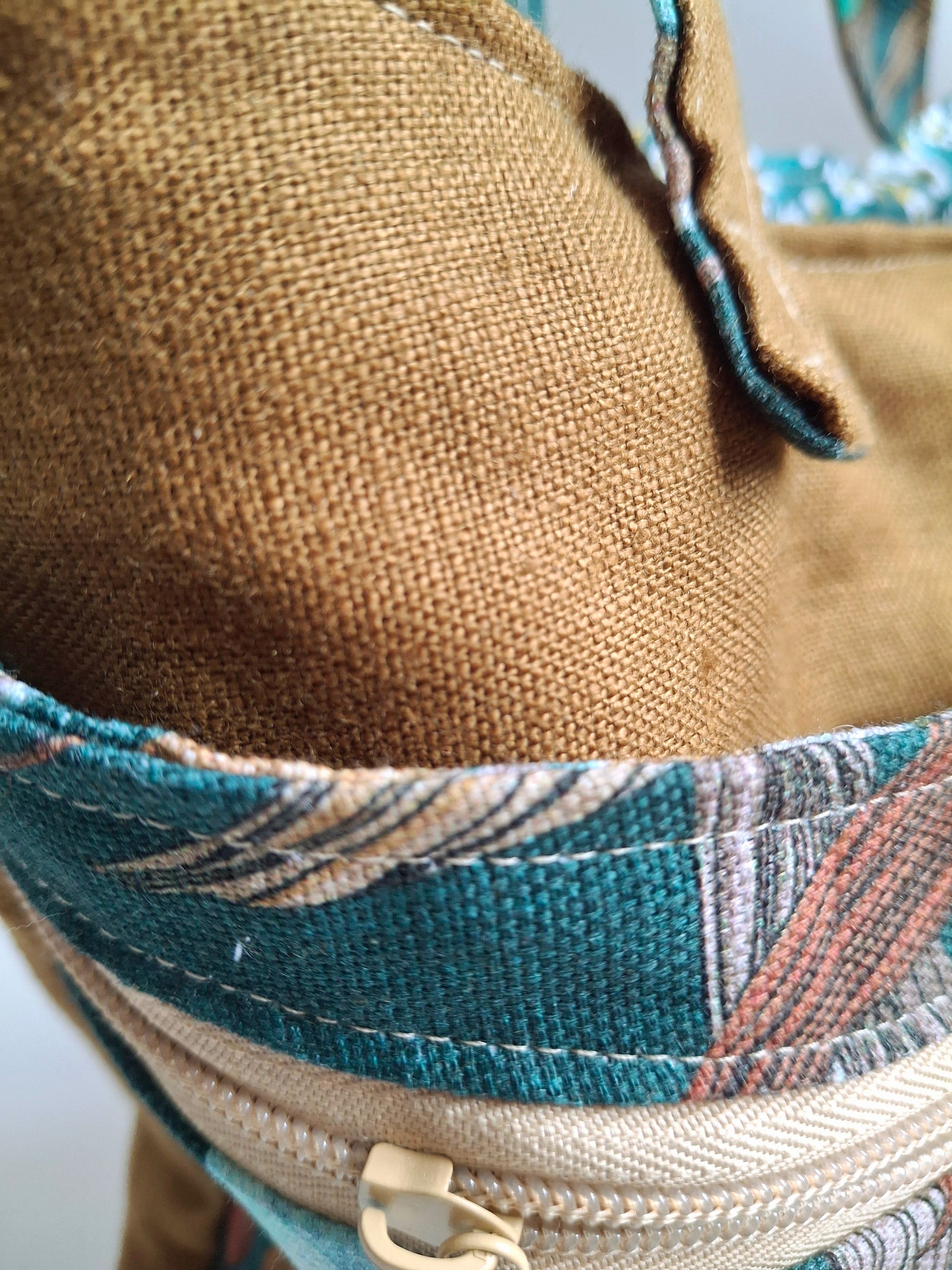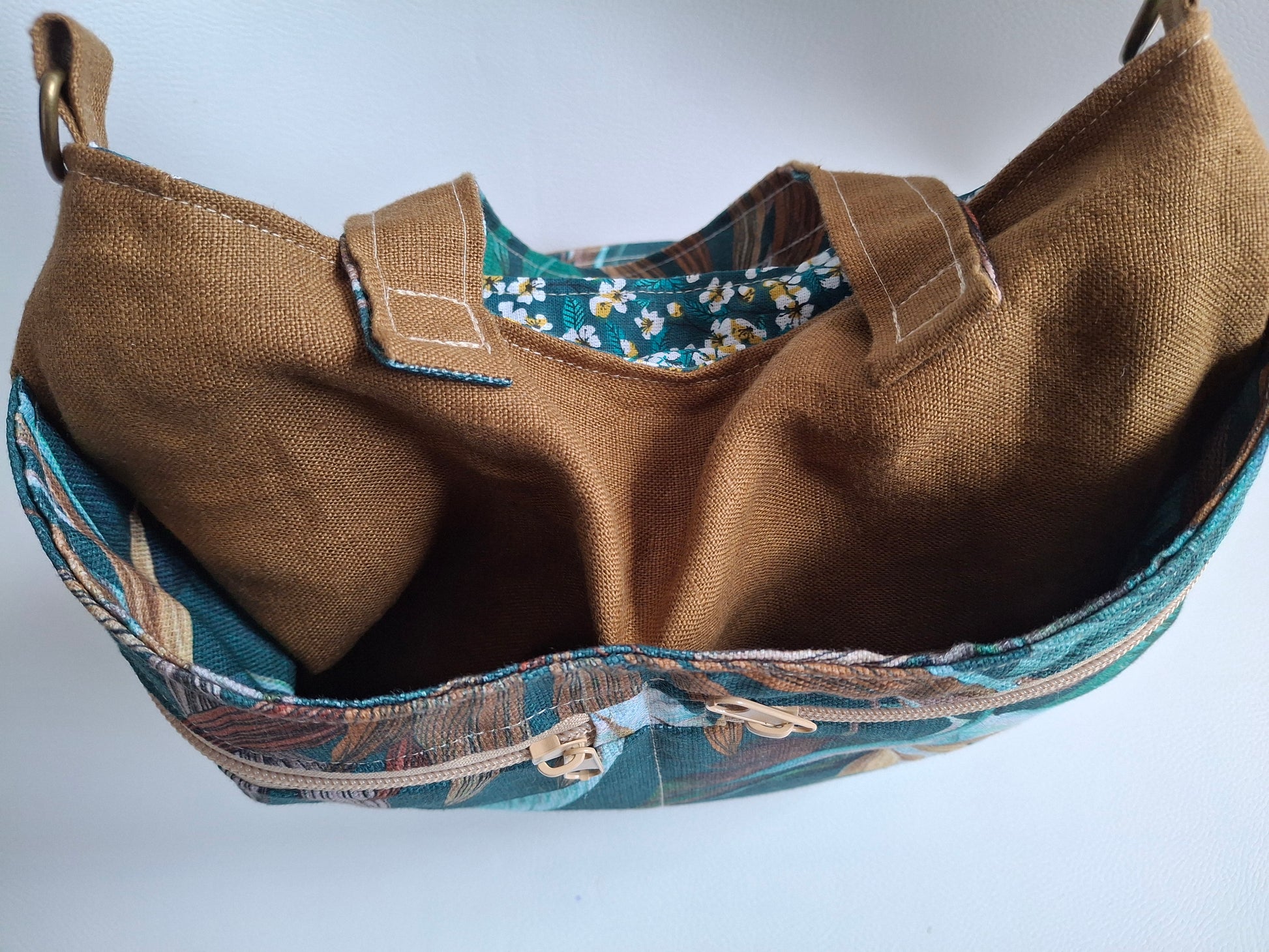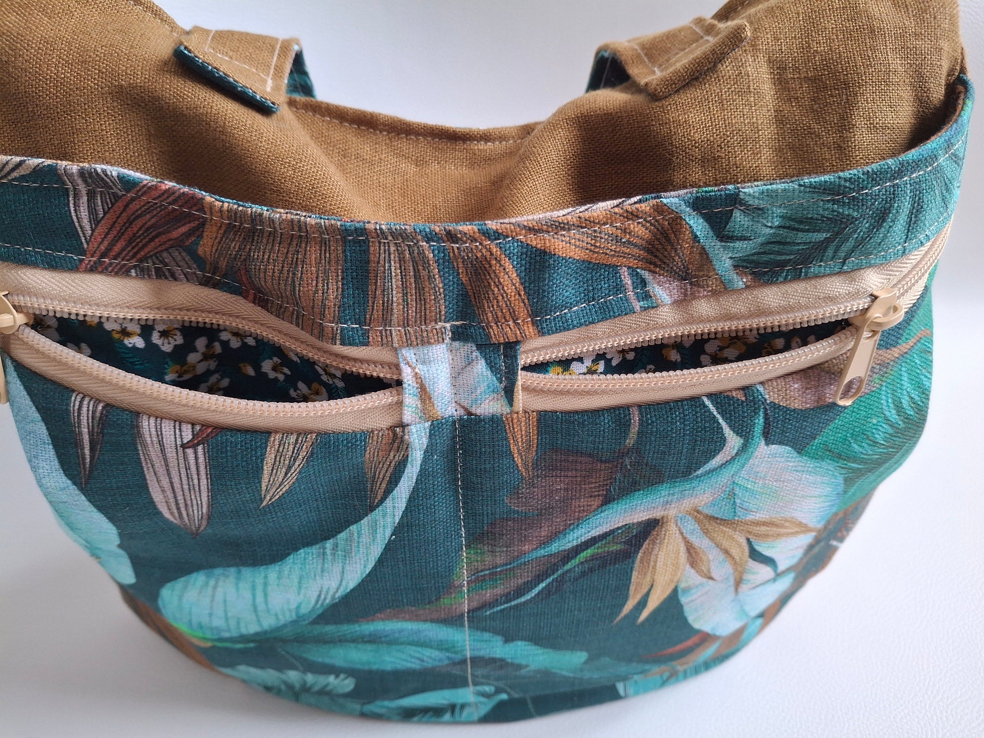 Le sac Vanessa allie élégance et praticité avec son lin teinté couleur tabac et son imprimé tropical. Il offre deux grandes poches zippées et deux poches plaquées à l’extérieur pour organiser vos essentiels, ainsi qu’une poche plaquée à l’intérieur. Conçu pour être porté à la main ou au bras, il dispose aussi d’une attache pour ajouter une anse selon vos préférences (non fournie). Pratique et stylé, ce sac vous accompagne facilement au quotidien.