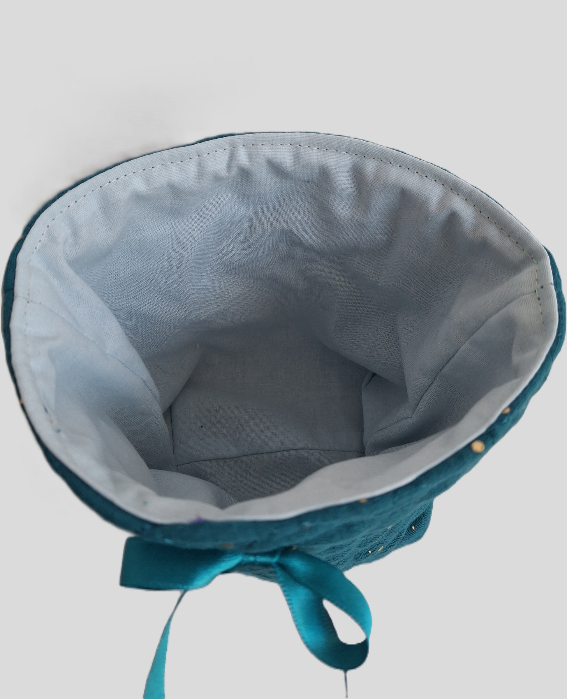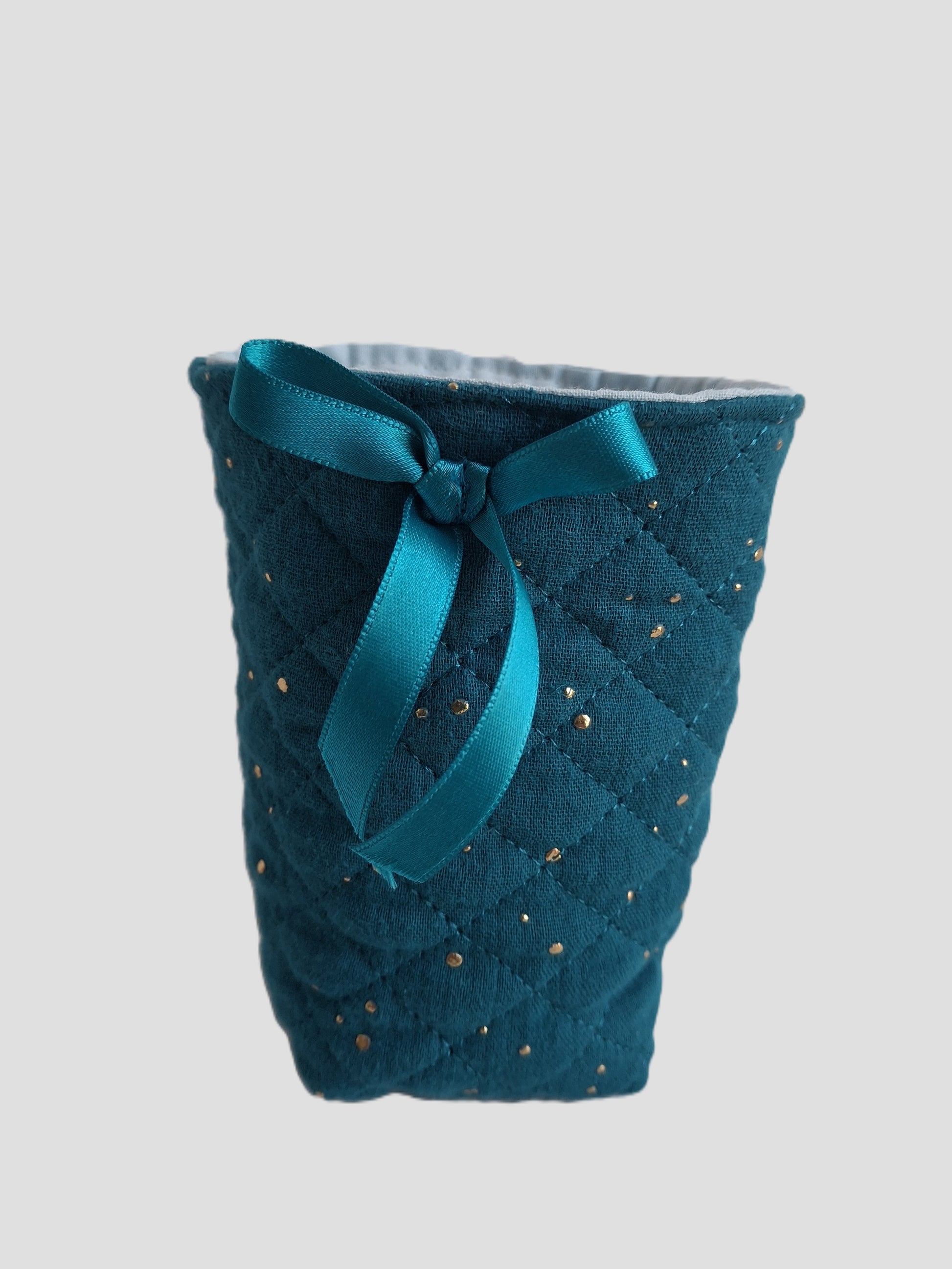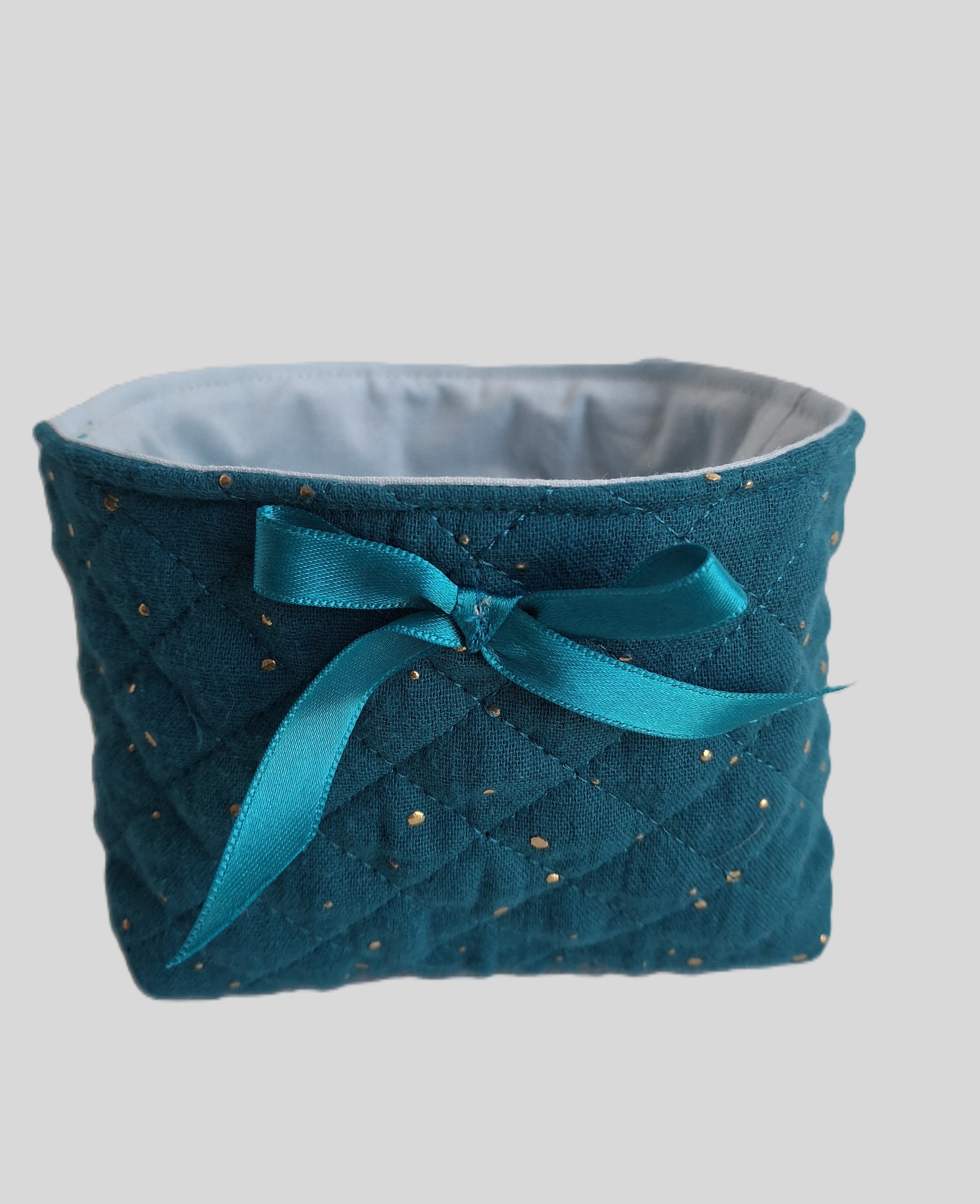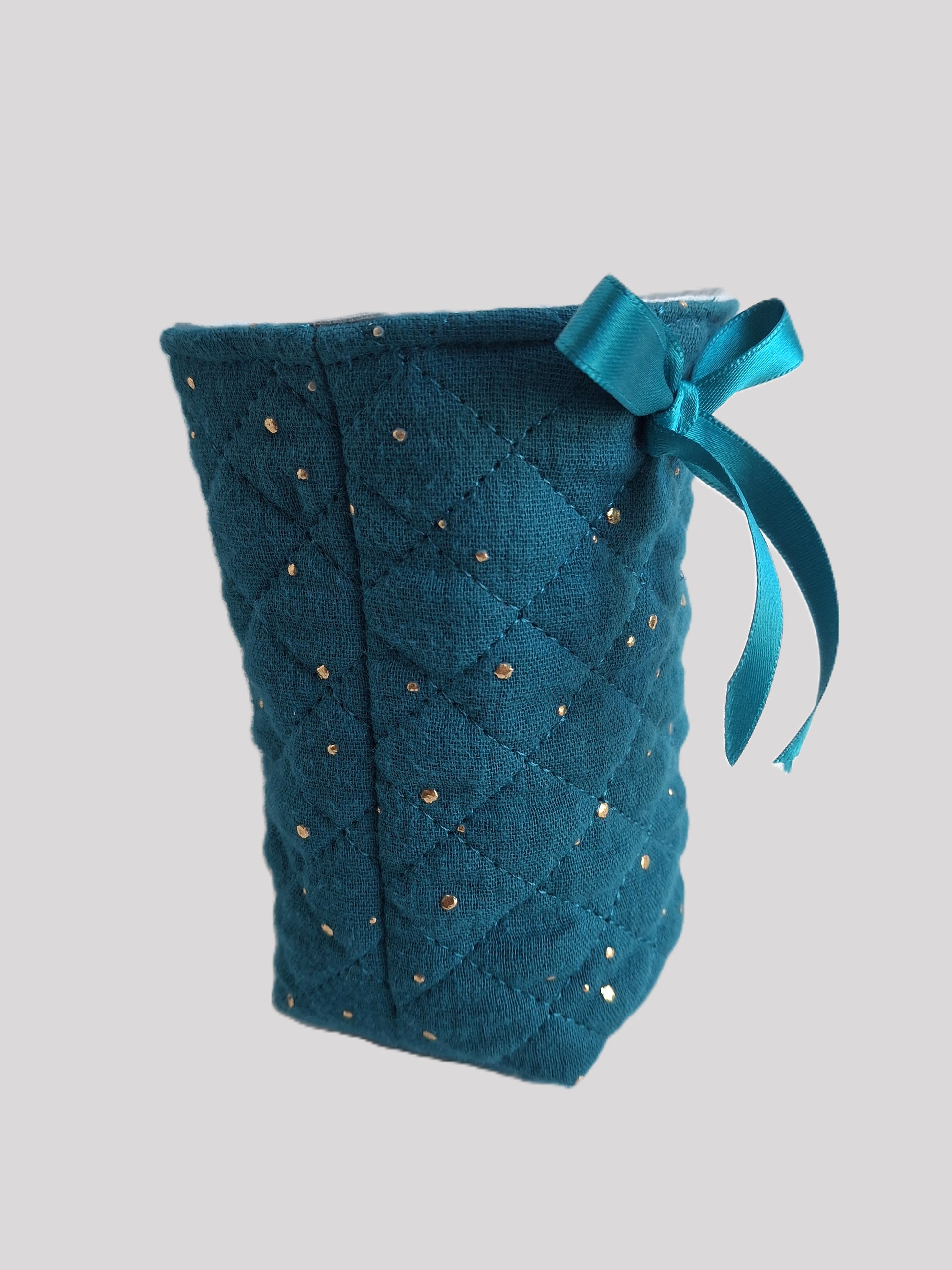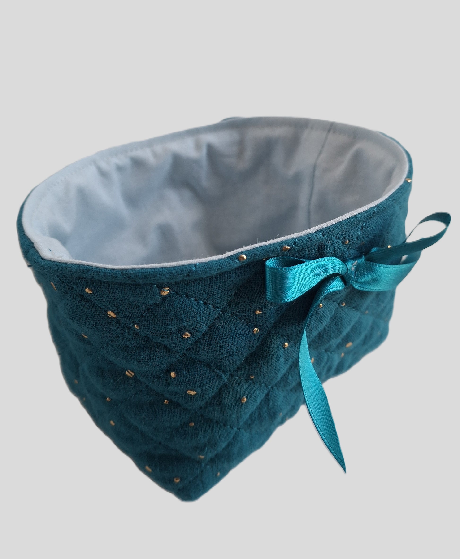 Apportez élégance et organisation à votre salle de bain avec ce trio de panières en tissu matelassé turquoise subtilement moucheté d’or. Conçues en trois dimensions distinctes, elles offrent un rangement raffiné pour vos lingettes démaquillantes, pinceaux et brosses, alliant fonctionnalité et charme coloré pour un espace à la fois pratique et sophistiqué.